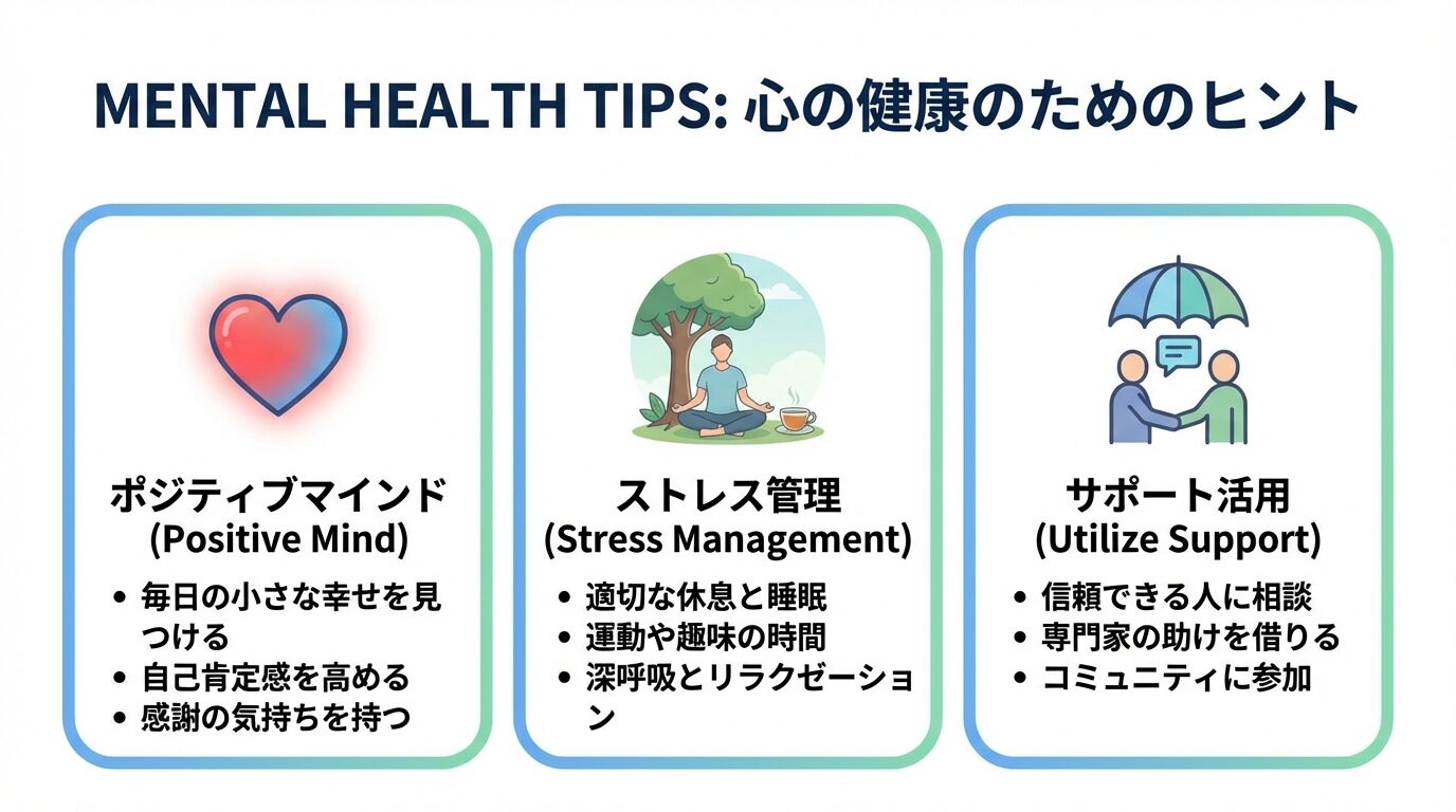 ストレスを感じたときは、リラックスできる時間を設けましょう。深呼吸や瞑想、ヨガ、好きな音楽を聴く、趣味に没頭するなど、ストレス解消に効果的な方法を取り入れます。また、ジョギングやウォーキング、ジムでのトレーニングなど、自分に合った運動を習慣化することで、気分がリフレッシュし、前向きな気持ちになることができます。